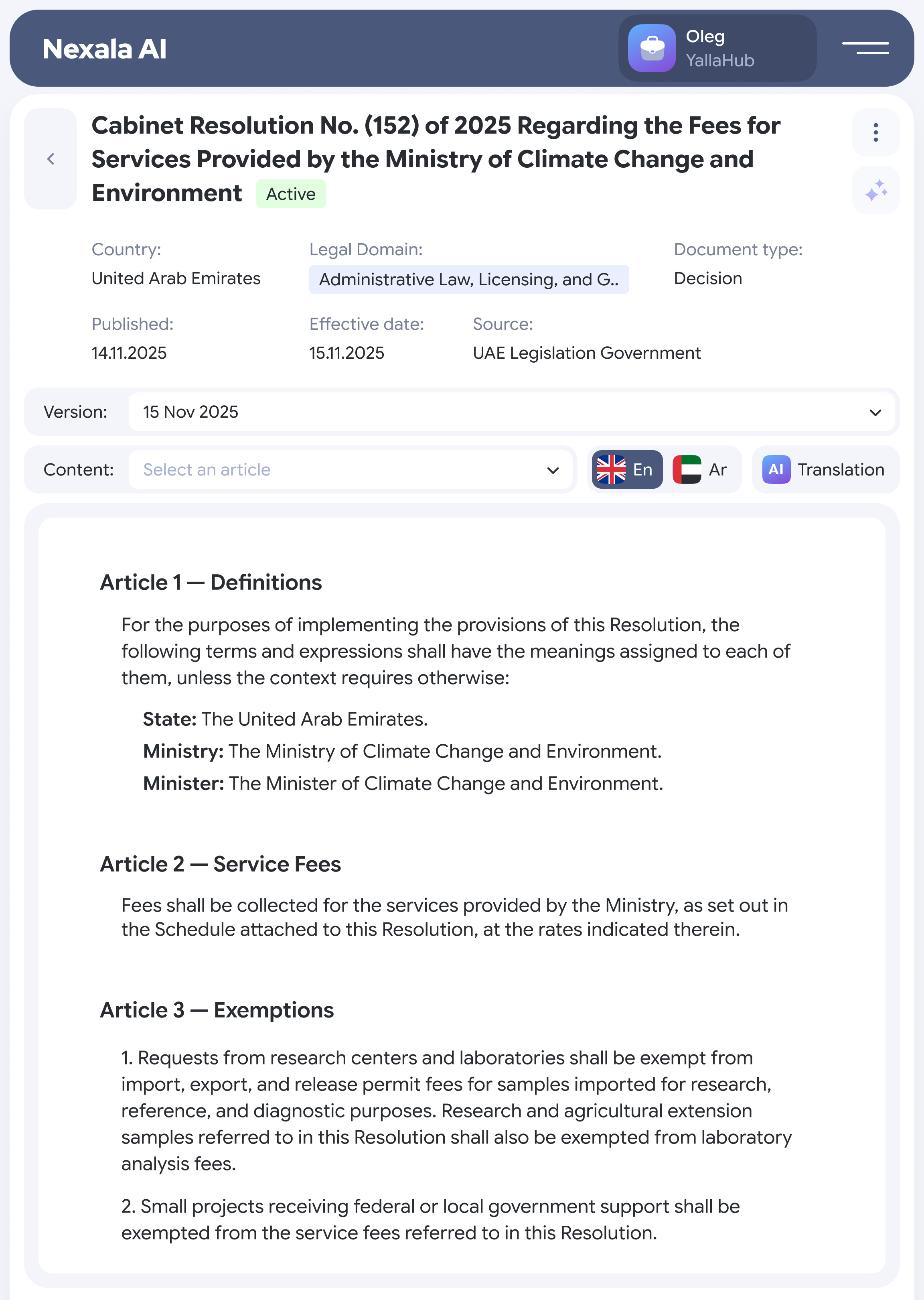 UAE legislation is fragmented across federal, emirate, and free zone authorities, making legal research and compliance complex and time-consuming. Nexala brings this information together into one structured, searchable, and reliable system, powered by artificial intelligence
